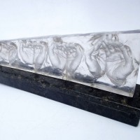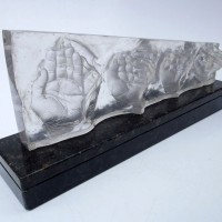 Descrição: Escultura de resina de poliéster cristal, maciça, fixada à base de granito.