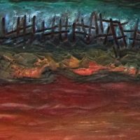 Pintura acrílica sobre suporte tridimensional modelado e moldado por laminação em resina e fibra de vidro.