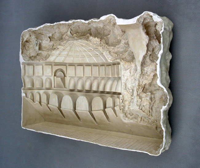 Curitiba. Executada em marmorite, laminada com fibra de vidro. Obra de parede.